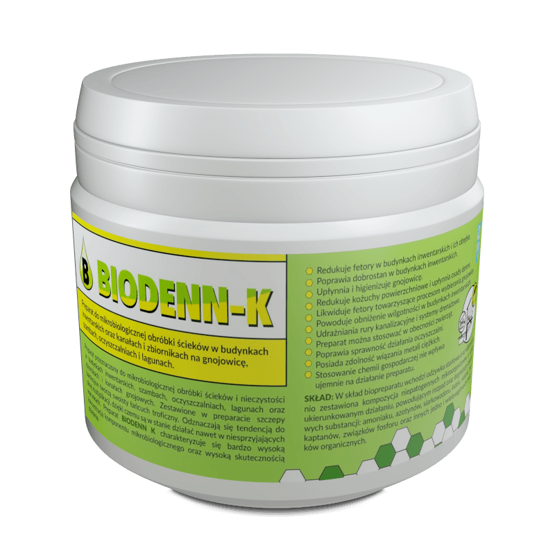 Preparat przeznaczony do mikrobiologicznej obróbki ścieków i nieczystości w szambach i oczyszczalniach. Charakteryzuje się bardzo wysoką koncentracją biokomponentu mikrobiologicznego. Ponad 2 miliardy bakterii w jednym gramie biopreparatu. Udrażnia rury kanalizacyjne, osadniki i systemy drenażowe. Redukuje pokłady osadów dennych w oczyszczalniach a co za tym idzie zmniejsza częstotliwość opróżniania oczyszczalni. Likwiduje nieprzyjemne zapachy (znaczna redukcja amoniaku i siarkowodoru) Poprawia sprawność działania oczyszczalni. Środek absolutnie bezpieczny dla ludzi, zwierząt oraz środowiska. Powoduje rozkład tłuszczów i protein (zapobiega ich krystalizacji) Redukuje kożuchy powierzchniowe. Hamuje rozwój patogennych drobnoustrojów, w tym bakterii nitkowatych, zapobiega efektowi “puchnięcia ścieków”
